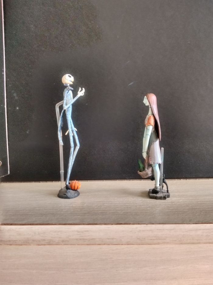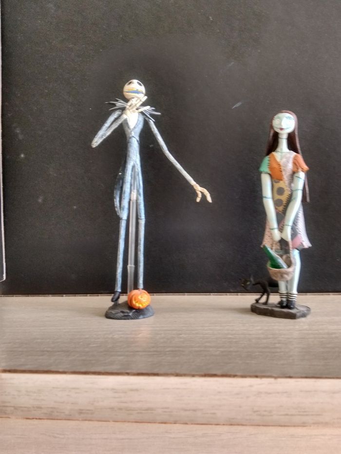 Figurines collector de Monsieur Jack et Sally. En parfait état. Les bras et jambes de Monsieur Jack sont démontables. Hauteur Jack : 13 cm. Hauteur Sally : 10 cm.