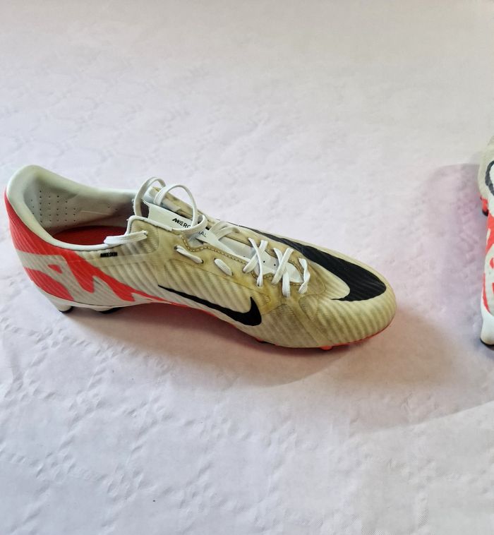 Bonjour , vend , chaussure / crampons de foot , homme Nike Air Zoom Mercurial Vapor 15 Academy MG Ready - Rouge/Blanc/Noir , pointure 43 En bon état , nombreuses tâches du a une utilisation sur le terrain #foot #football #sport #sportswear #homme #man #men #chaussures #basket #sneakers