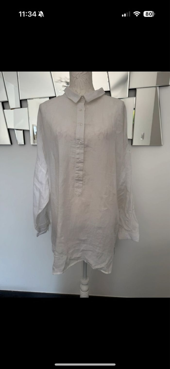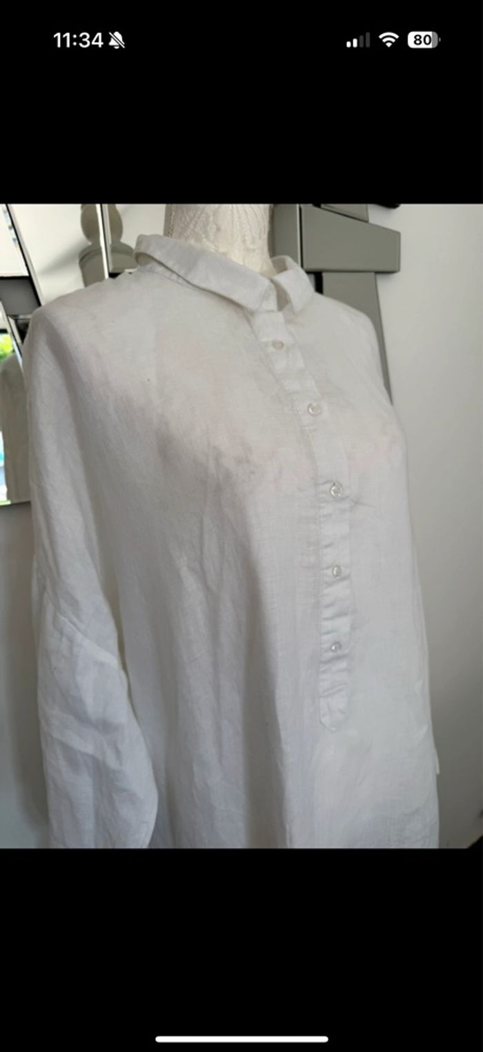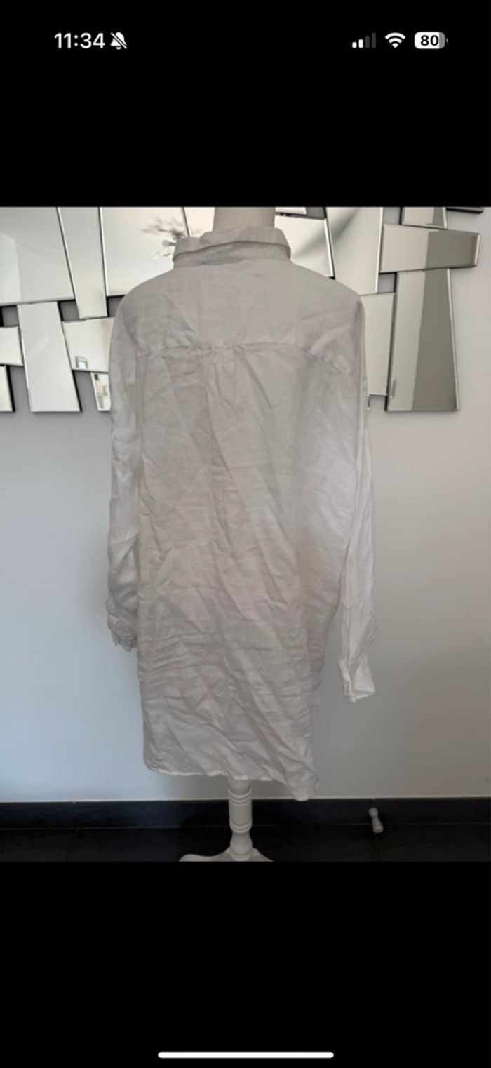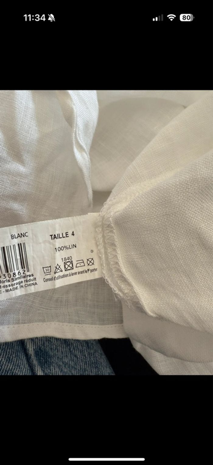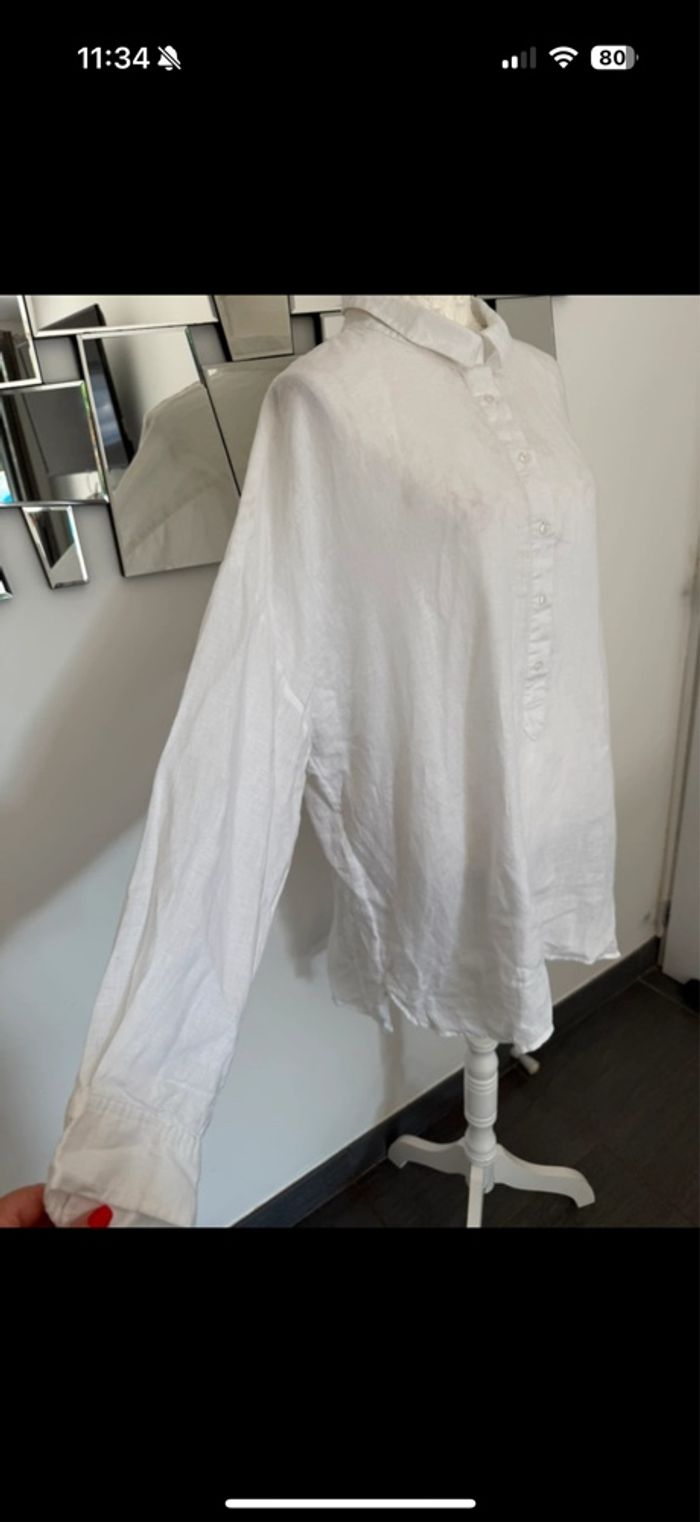 ✨ Marque: Monoprix 📐 Taille 44/46 🎨 Couleur : Blanche 👚 Col et boutonné jusqu’au milieu 🧵Matière : 100% lin , qualité ++ Tissu léger, parfait pour un look chic et décontracté 📐 Mesure : Aisselle aisselle 74cm 🏷️ Etat : très bon état, portée peu de fois