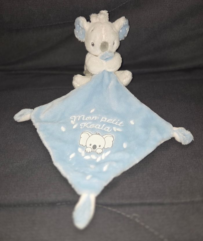 Doudou peluche koala en velours de couleur blanc.