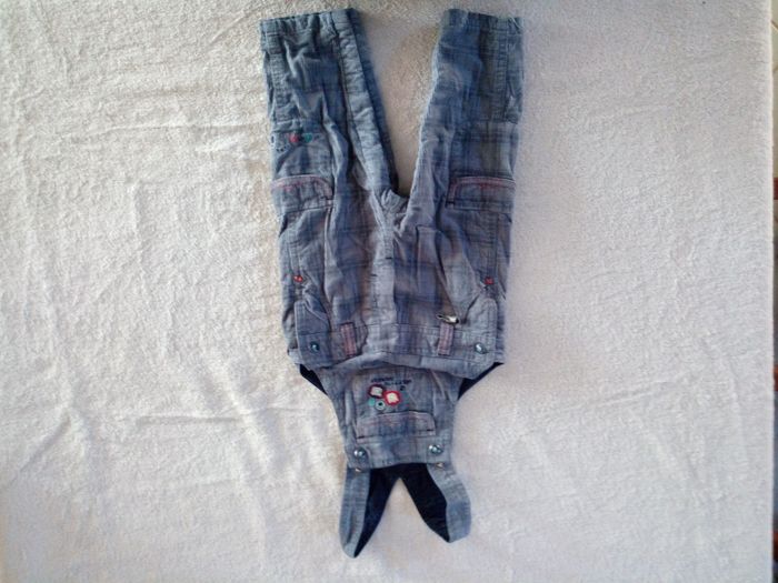 SALOPETTE BLEU SERGENT-MAJOR 74 CM 100 % COTON EN TRES BON ETAT ACHETE NEUF ET UTILISE PAR UN SEUL ENFANT (REF PERSO : A26)