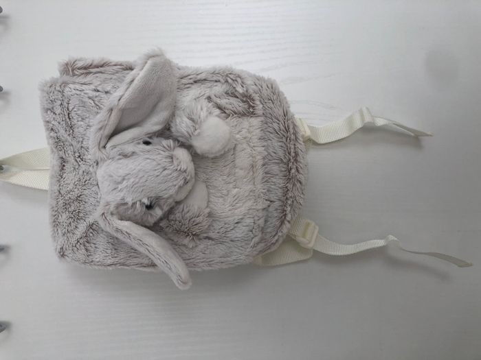 Très joli sac à dos enfant avec bretelles réglables et anse sur le haut. Tout doux et agréable à toucher avec un gros lapin à l'avant. Marque Baby Nat'