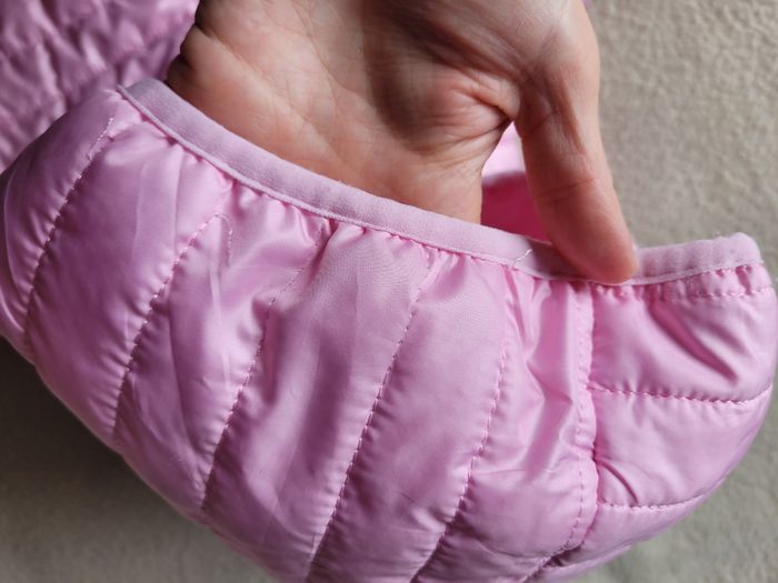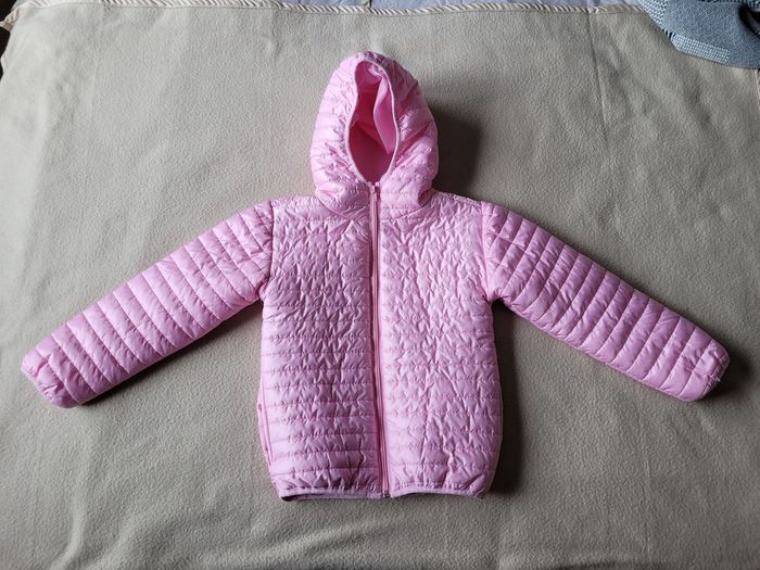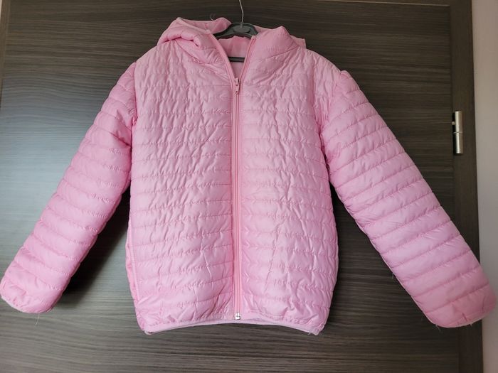 Doudoune 8 ans à capuche Couleur rose, avec des poches latérales En très bon état, mais fil tiré au niveau de la capuche cf dernière photo