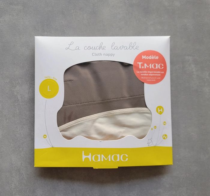 Culotte pour couches lavables, système TE3, de la marque Hamac, taille L (9-17 kg), culotte Tmac coloris Coffee Article non neuf Lavé pour la vente. Prête à l'emploi