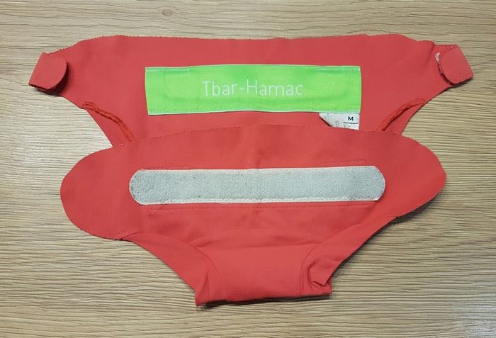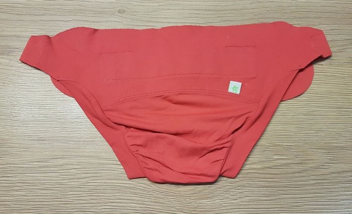 Culotte de la marque Hamac Paris, système Tmac (TE3), coloris Smoothie, taille M (6-12 kg). Article non neuf. Je ne les ai pas examinées a la loupe, mais quelques légères bouloches possibles et scratch grisé mais n'empêchent en rien son utilisation. Ancien coloris. Article lavé pour la vente.