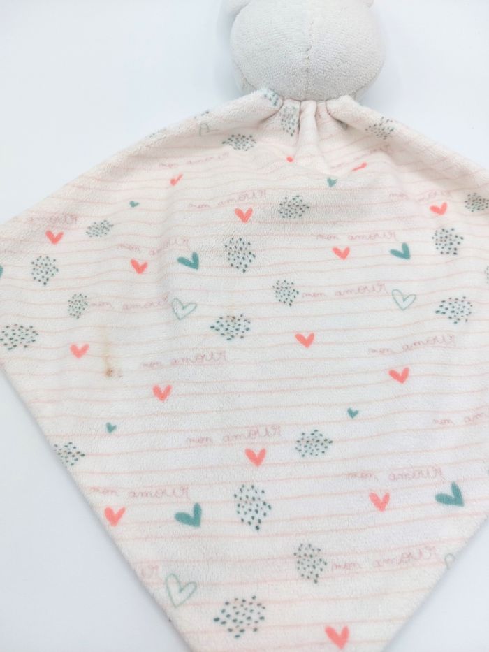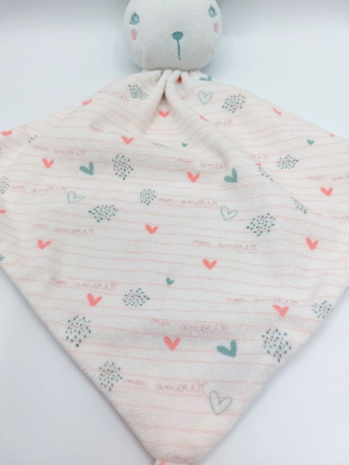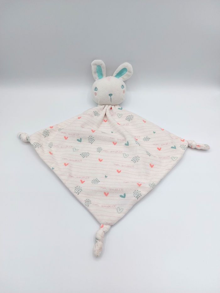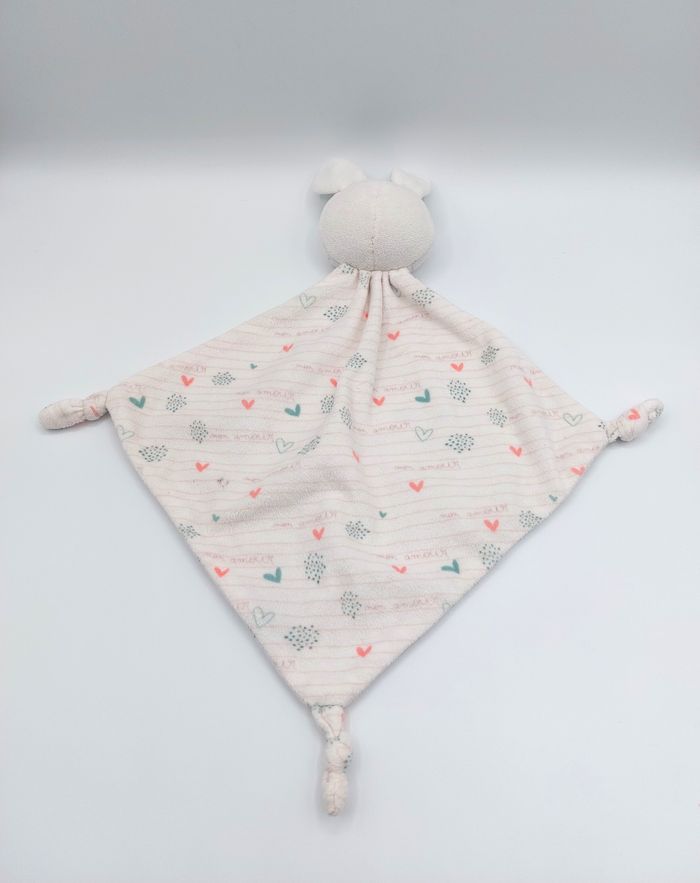 Doudou plat lapin blanc mon amour ORCHESTRA coeurs rayures
