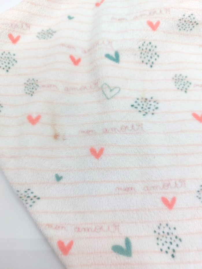 Bon état, lavé et tout doux - étiquette coupée, 2 petite taches sont restées malgré le lavage (voir photos)