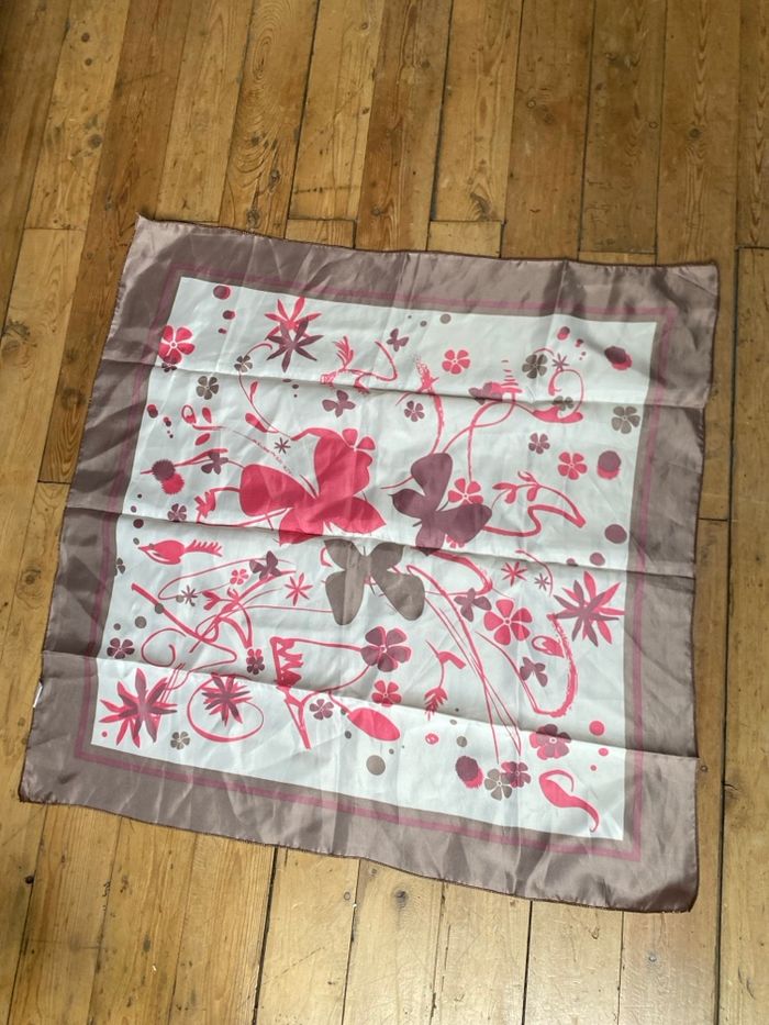 Joli foulard rose violine papillons  74/75 cm de côté - photo numéro 1