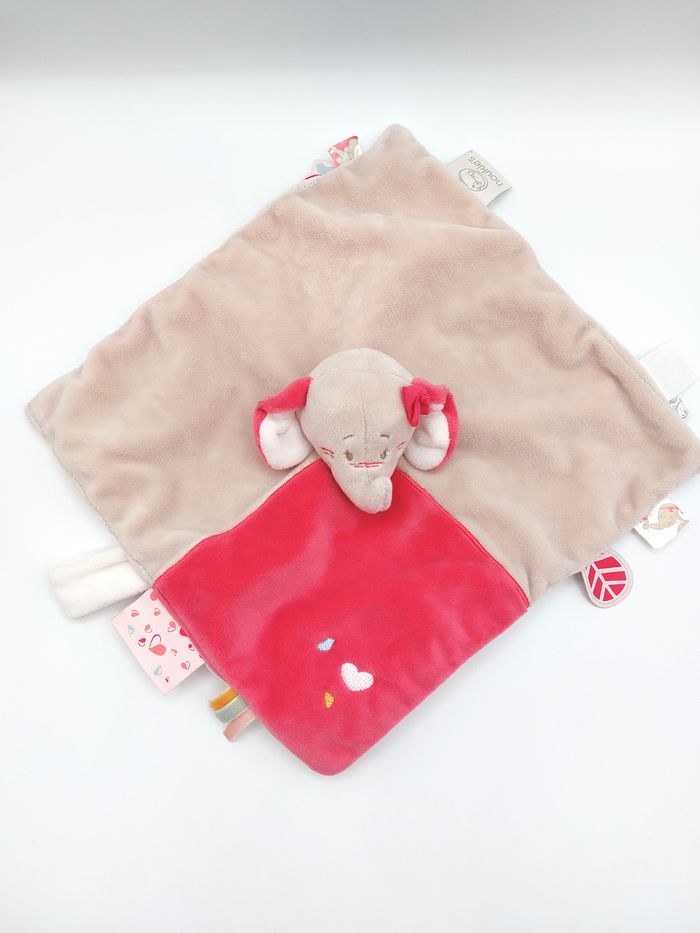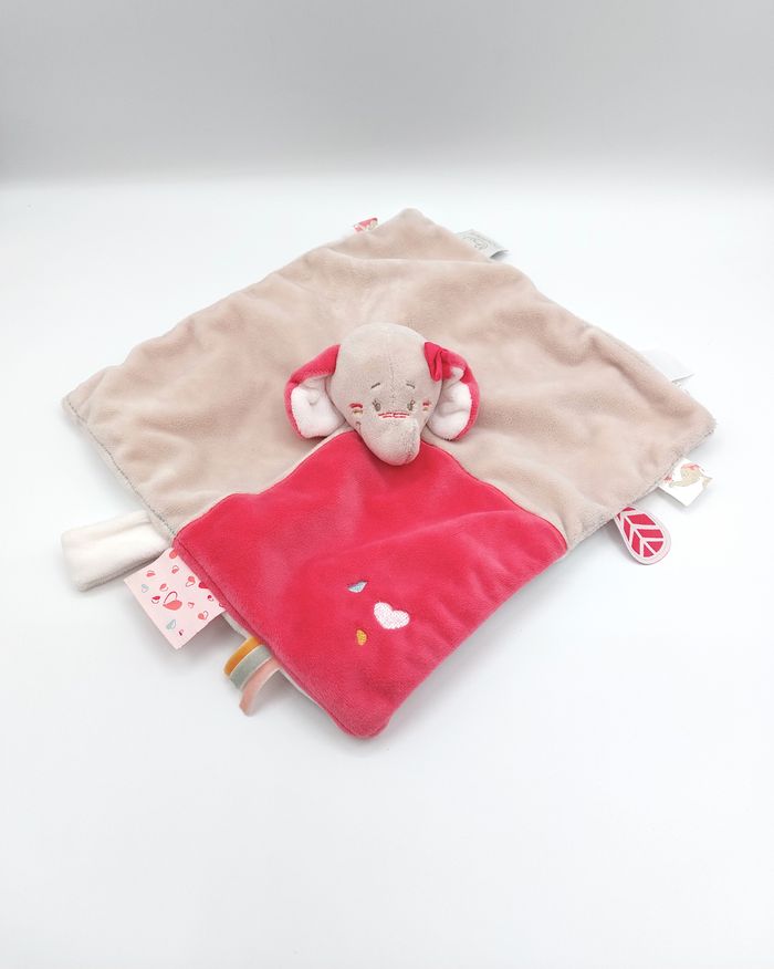 Noukie’s Doudou plat éléphant Anna et Pili rose beige blanc attache tétine cœurs Noukies - photo numéro 1