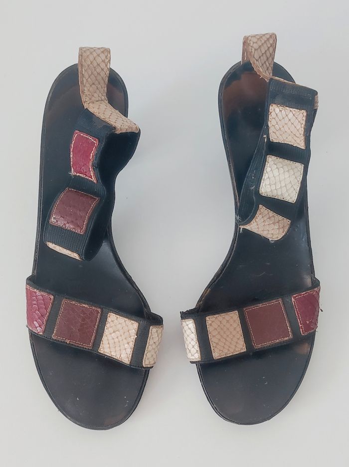 Sandales à talons cuir nuir motif carré beige rouge vintage - 39 - photo numéro 1