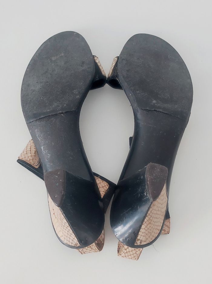 Sandales à talons cuir nuir motif carré beige rouge vintage - 39 - photo numéro 5