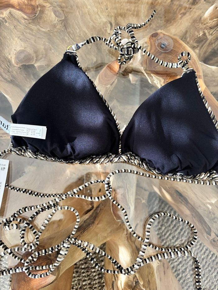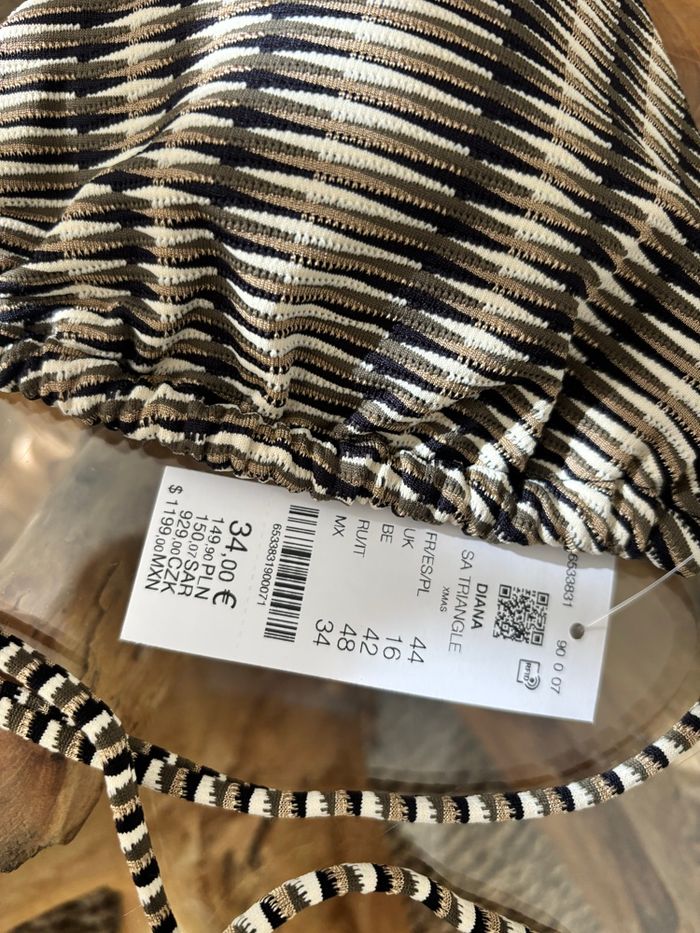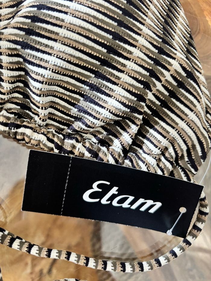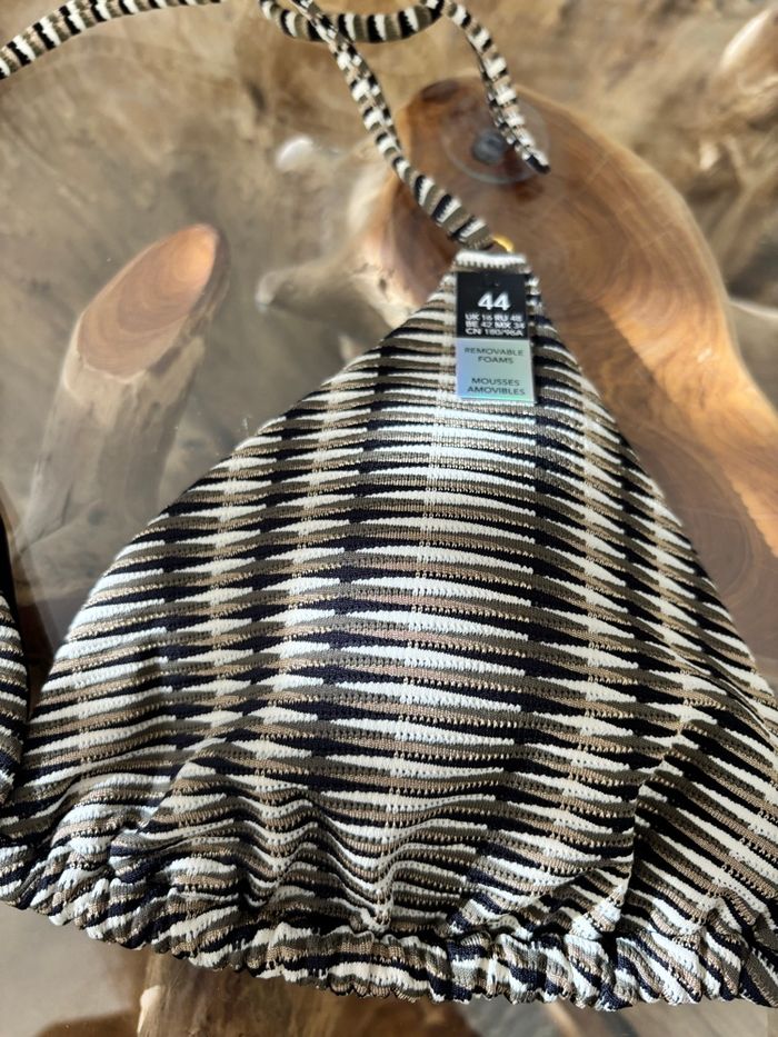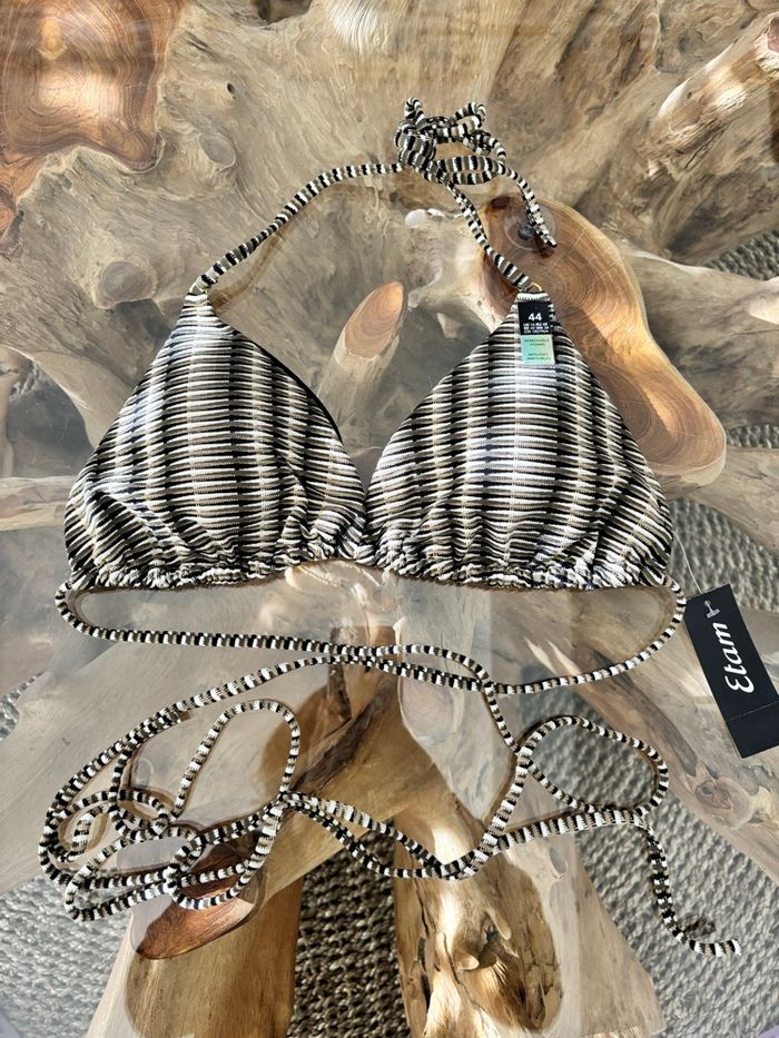 Haut de maillot de bain Etam Modèle Diana SA triangle Xmas Noir, écru, kaki et doré Coussinets amovibles Longue ficelle pour faire plusieurs fois le tour Taille 44 Neuf avec étiquette N'hésitez pas à faire des lots ✨ réduction dès 2 articles (d'autres maillots de bain à vendre) Pour voir mes autres maillots de bain à vendre : #mdbludi2607 ✉️Pas de remise en main propre