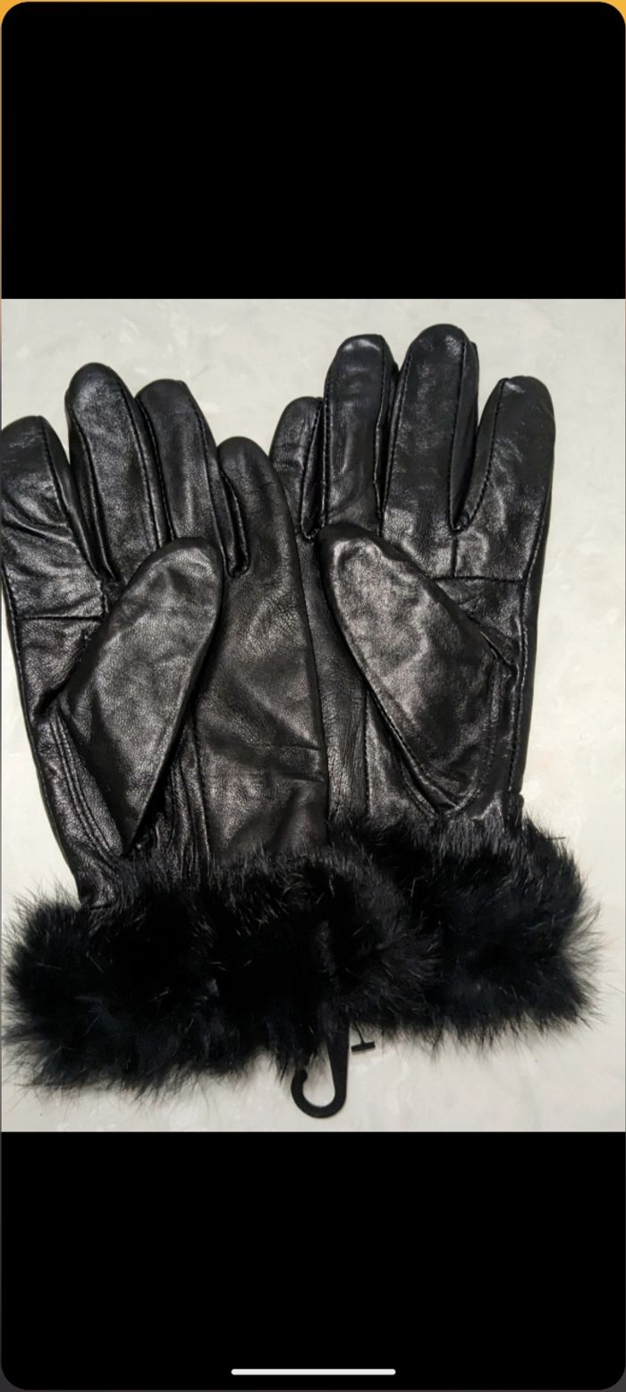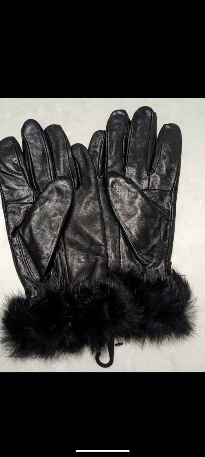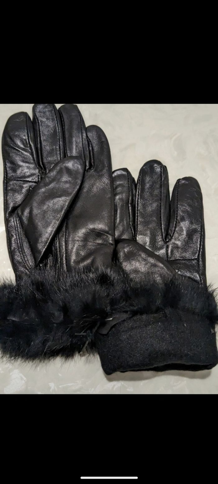 Magnifique paire de gants noirs en simili cuir et fausse fourrure. Taille 38 - photo numéro 1