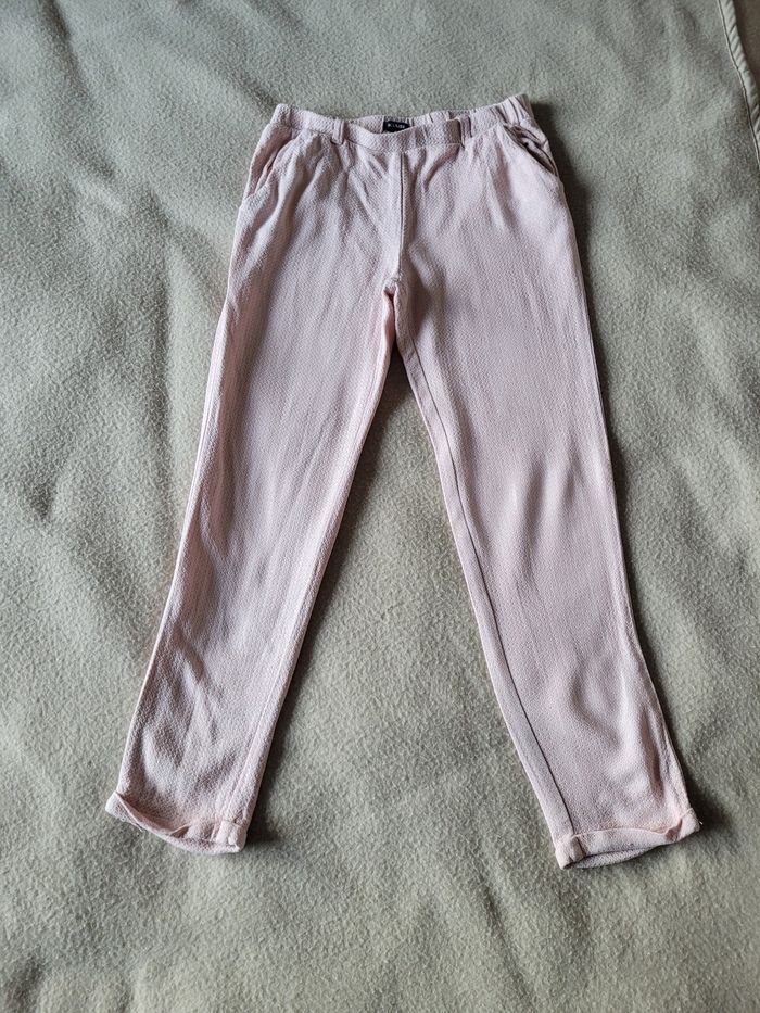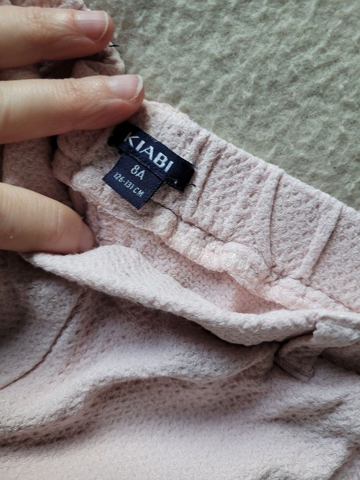 Pantalon fluide kiabi 8 ans Idéal intersaison Rose clair En bon état, lorsqu'on regarde de très près on peu voir des tâches par transparence
