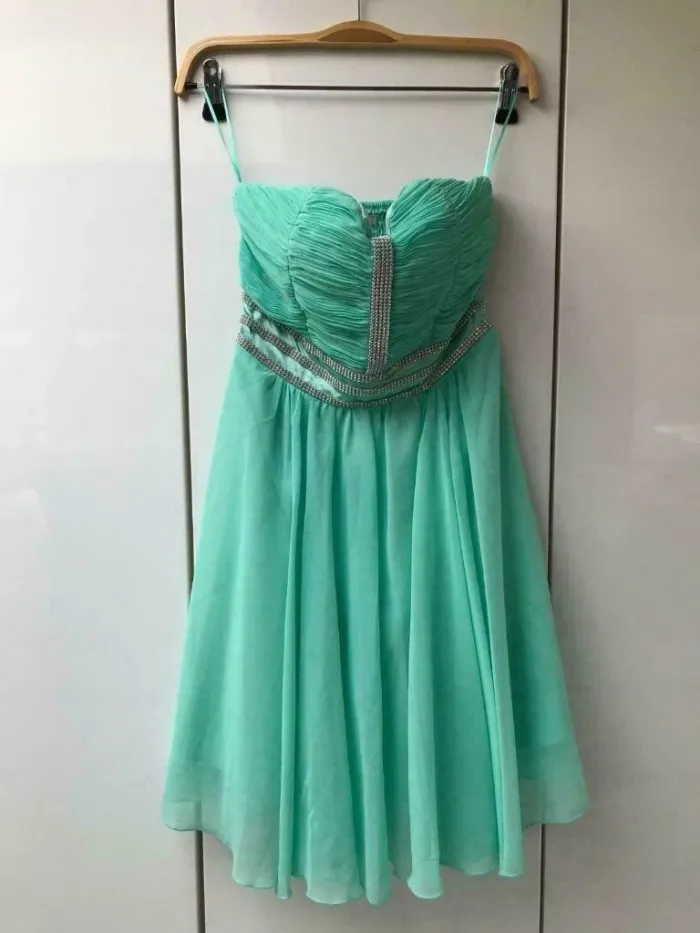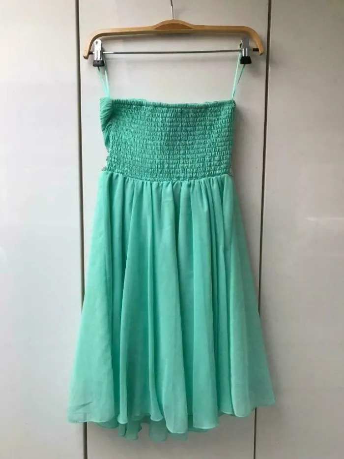Robe verte Eva & Lola Taille M La mesure à plat sous la poitrine est de 30 cm. La bustier est élastique dans le dos.