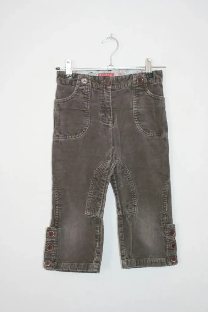 Pantacourt en velours à côtes marque Edeis, taille 120 (7 ans), taille réglable mais manque un bouton de la réglette, 100% coton, 260g