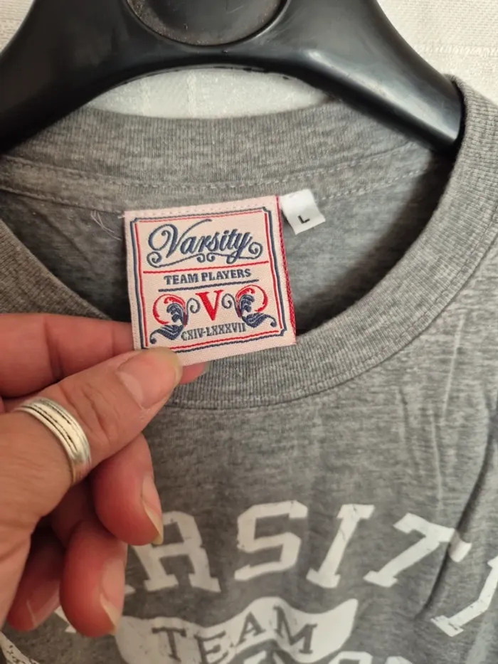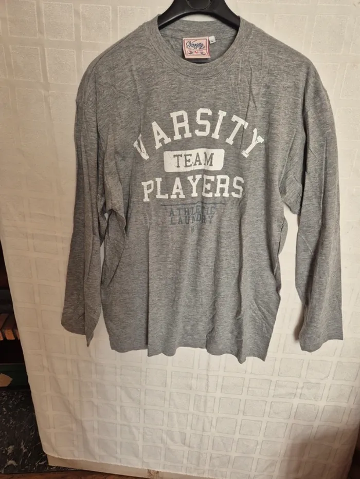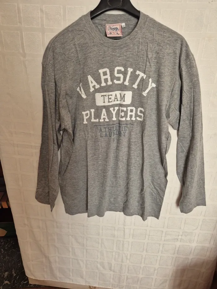 ⬇️mes autres annonces de vêtement homme👉#cg89homme un tshirt manches longues avec impression sur la poitrine. Il mesure 57 cm aux aisselles et 69 cm de longueur très bon état - taille L - marque Varsity #tshirt #sweat #pull #manchelongue #haut