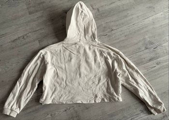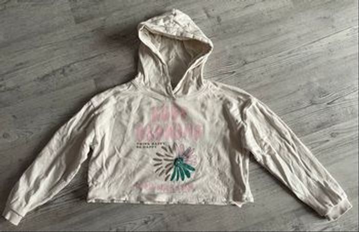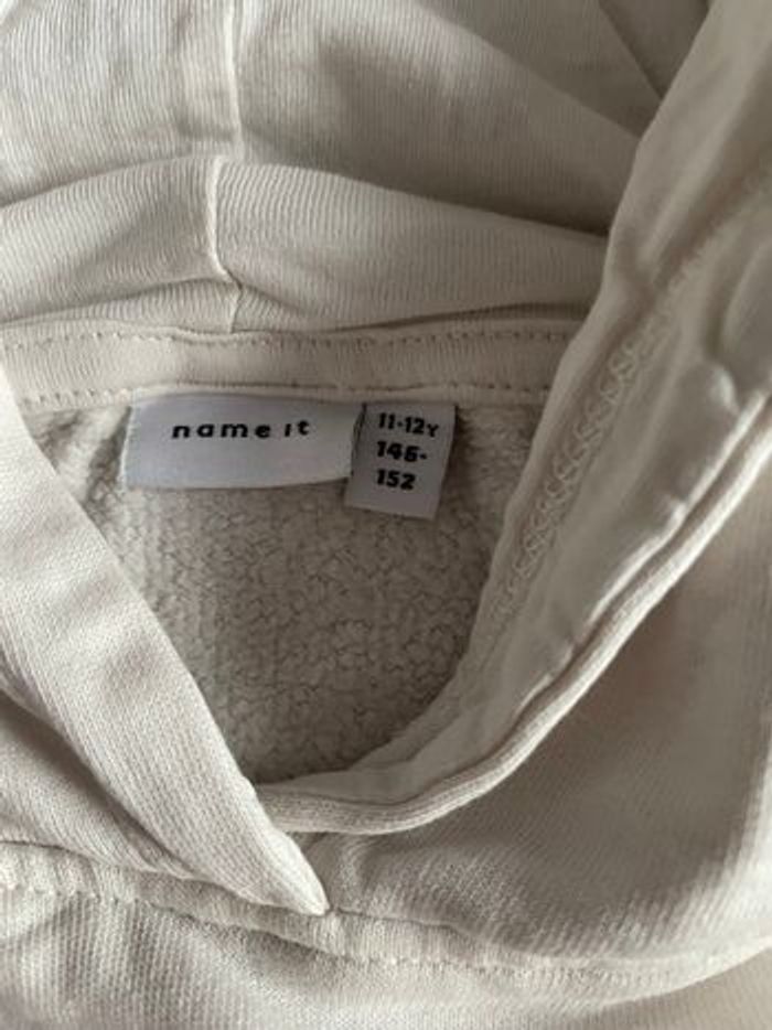 Sweat à capuche ample et court de la marque Name It Taille 11-12 ans Largeur aux épaules 51cm, longueur 37cm Petites traces d’utilisation Occasion, bon état