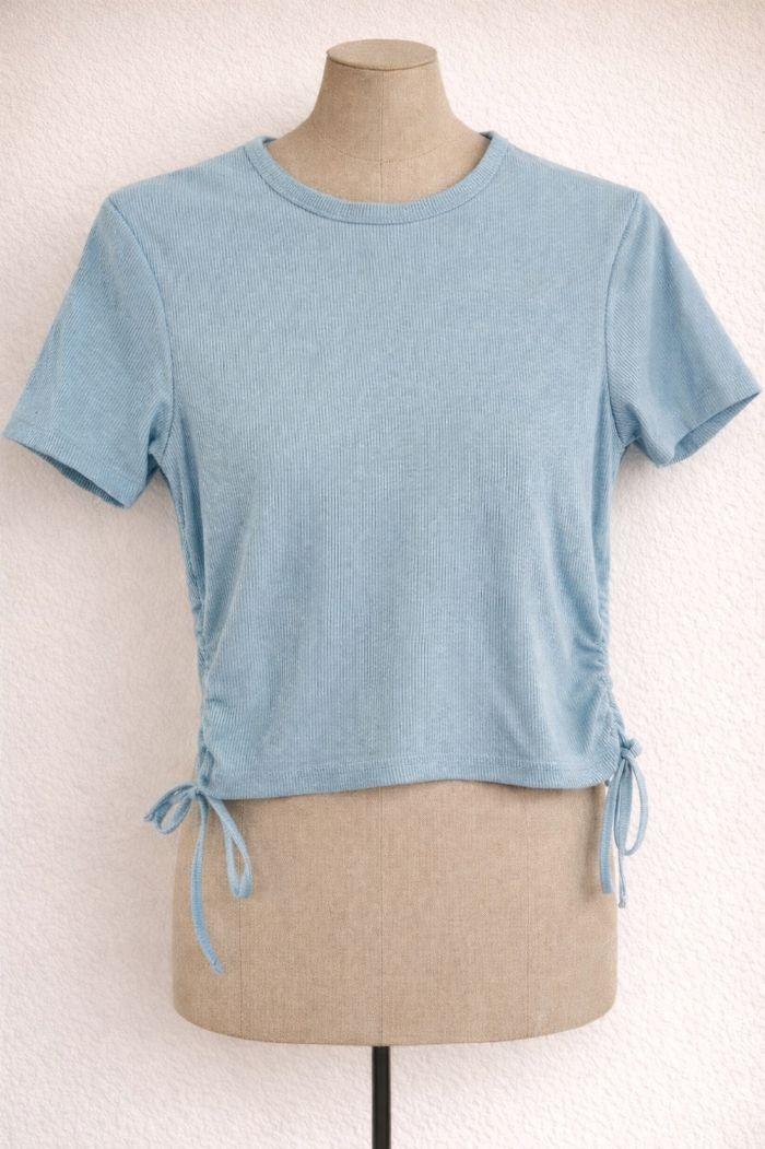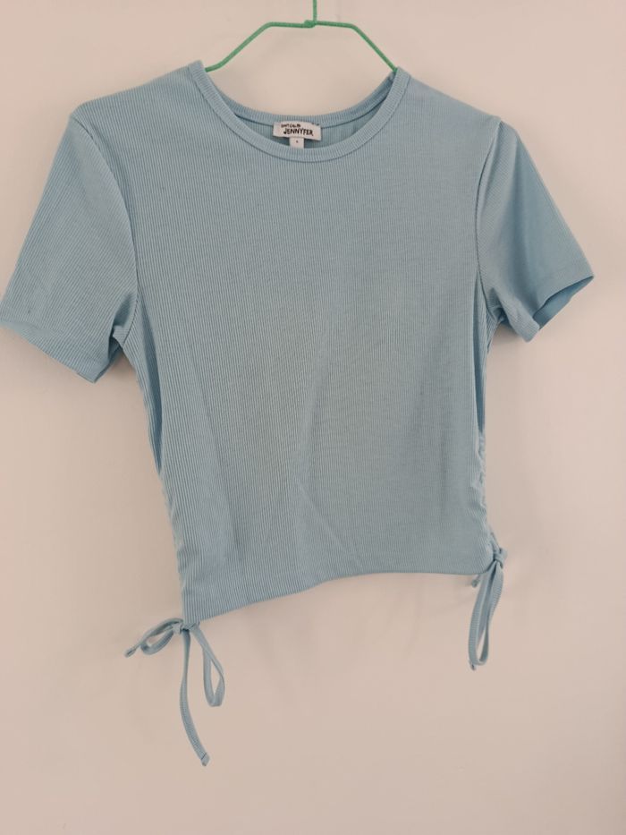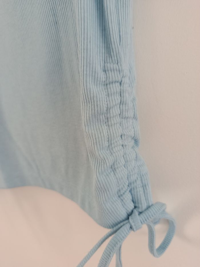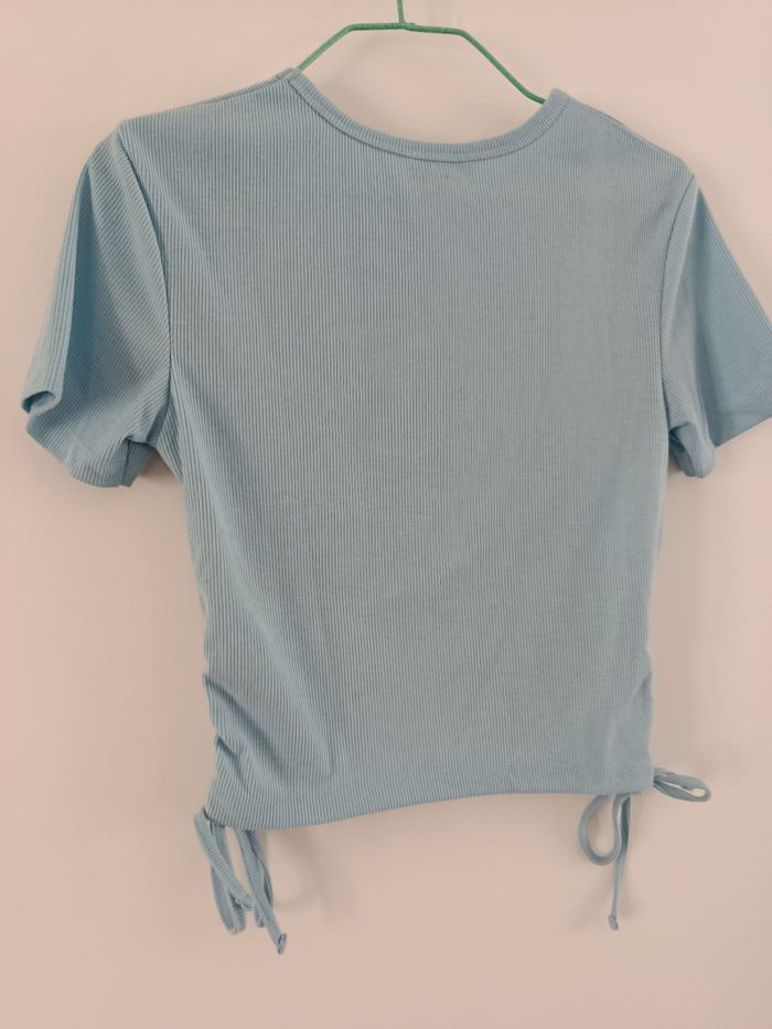 T-shirt bleu clair taille S avec lacets sur les côtés, col rond Marque Jennyfer Très bon état