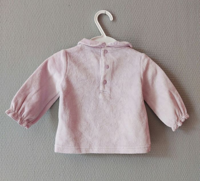 Je vends un pull de couleur violet avec un col et des boutons à pression dans le dos pour facilité le passage de la tête. Taille : 6 mois. Neuf, jamais mis.