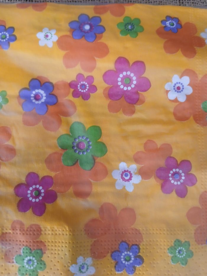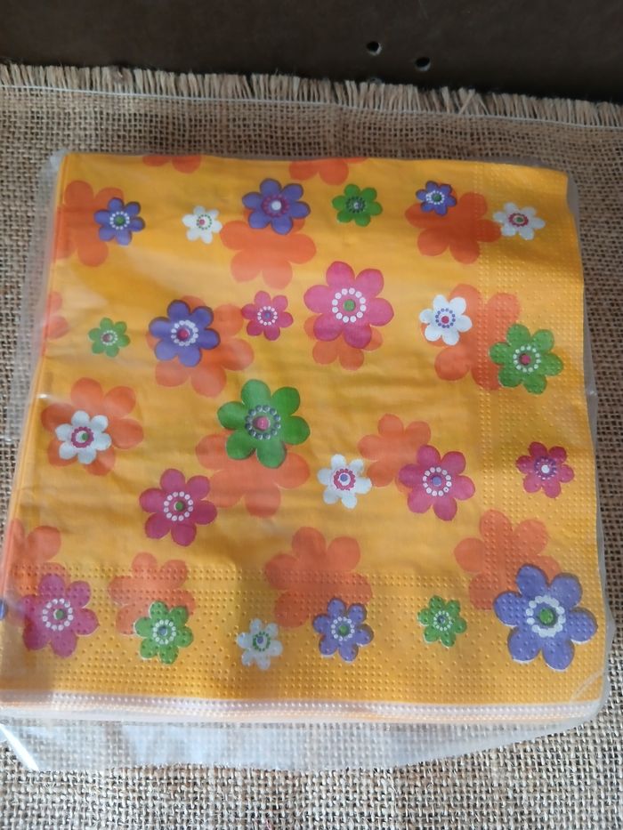 28 serviettes en papier jaune fleurs orange rose verte violette