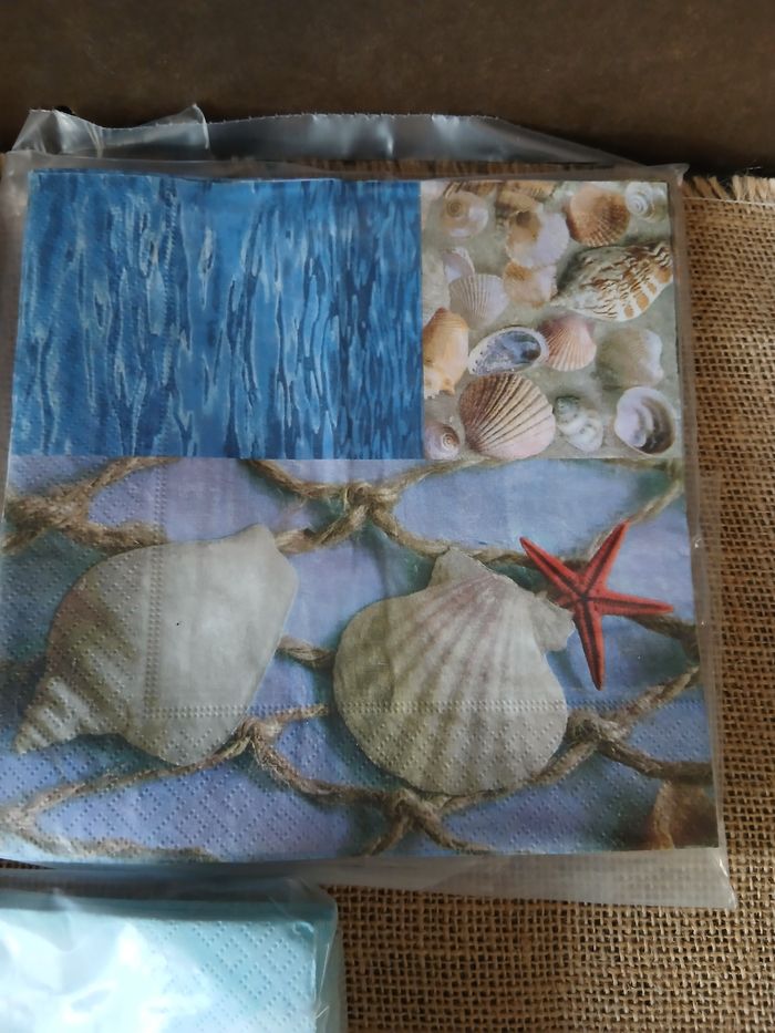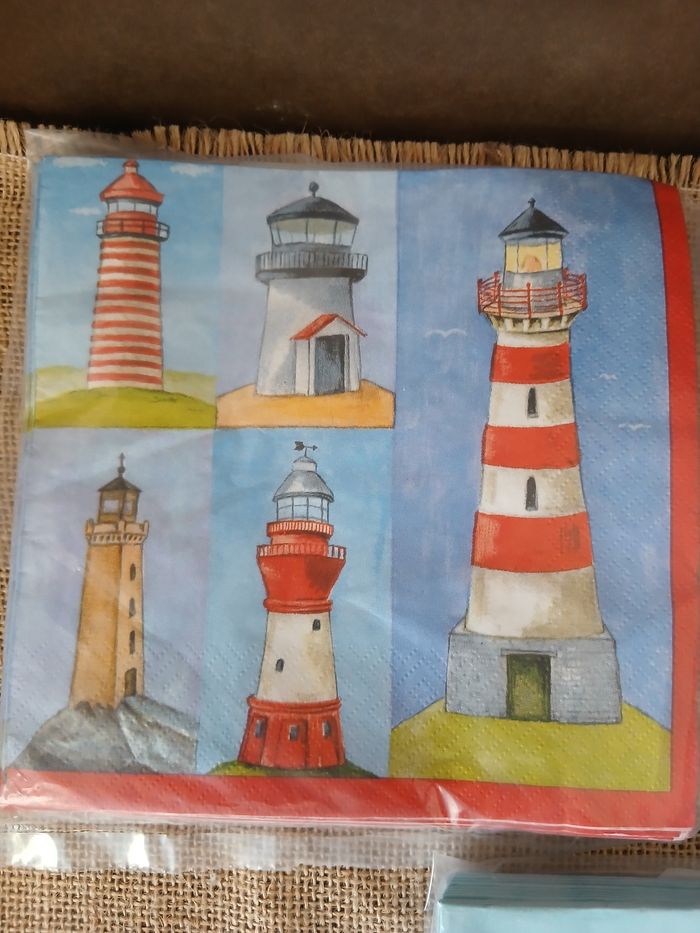Lot de 42 serviettes en papier thème mer phares bateaux coquillages. 11 phares 17 bateaux 14 coquillages