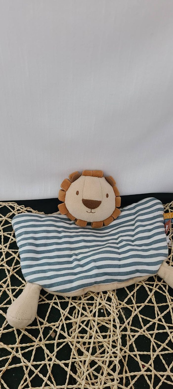 Doudou plat Lion marron beige rayé bleu blanc TAPE A L'OEIL TAO - photo numéro 1