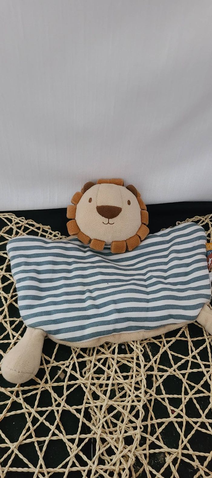 Doudou plat Lion marron beige rayé bleu blanc TAPE A L'OEIL TAO