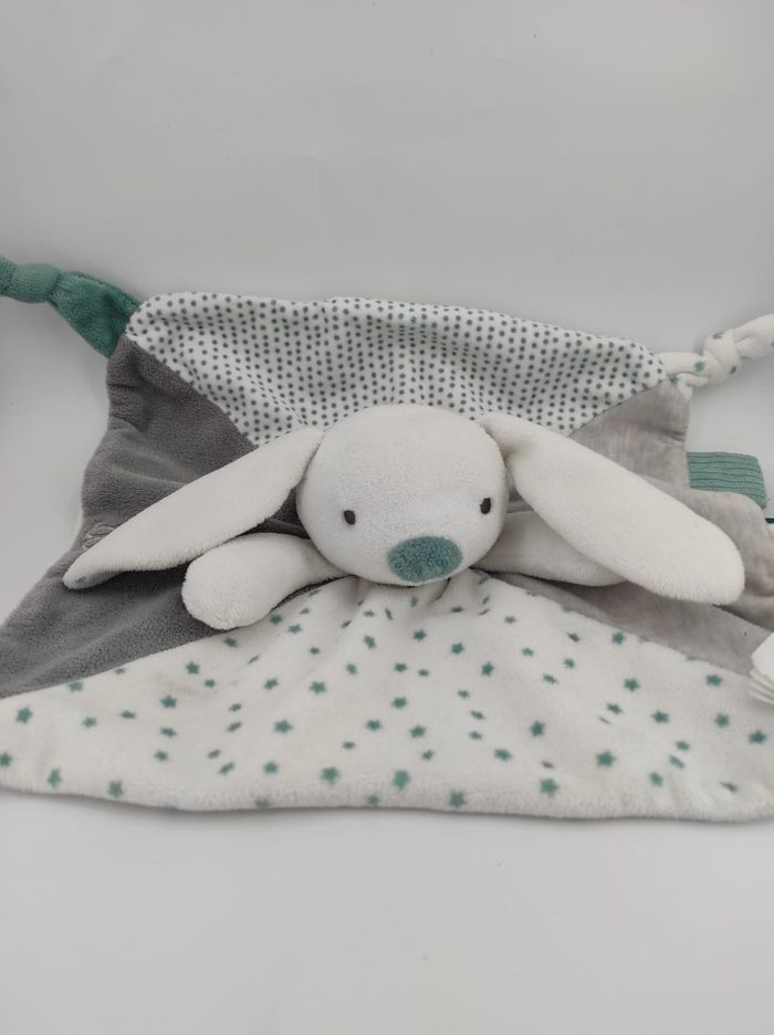 Doudou plat lapin blanc gris bleu étoiles OBAIBI - photo numéro 2