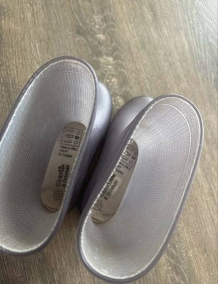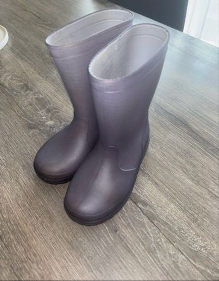 Botte pluie pointure 27 Couleur gris violet Semelle qui se décolle un peu au fond