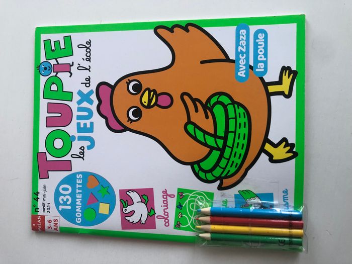 Magazine enfants Toupie 44 Avec Zaza la Poule Inclus: 4 crayons de couleur Marque Milan Taille 3-6 ans