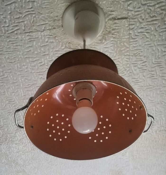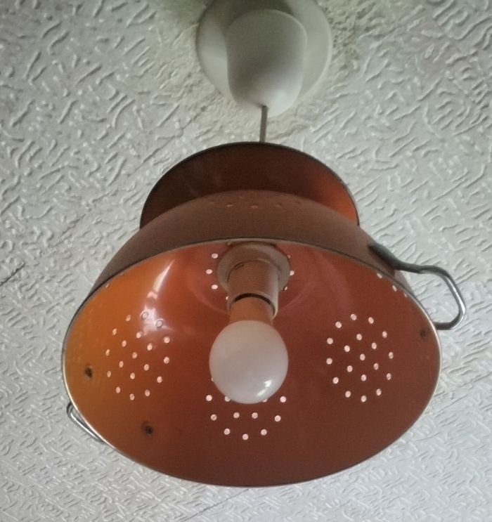 vends suspension de cuisine en métal de couleur orange. - Type de produit : Suspension de cuisine - Matière : Métal - Couleur : Orange - Motif :passoire Très bon état 15€