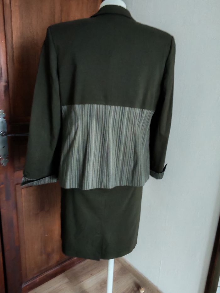 Ensemble veste de tailleur et robe vert kaki t40 Jacqueline Riu - photo numéro 2