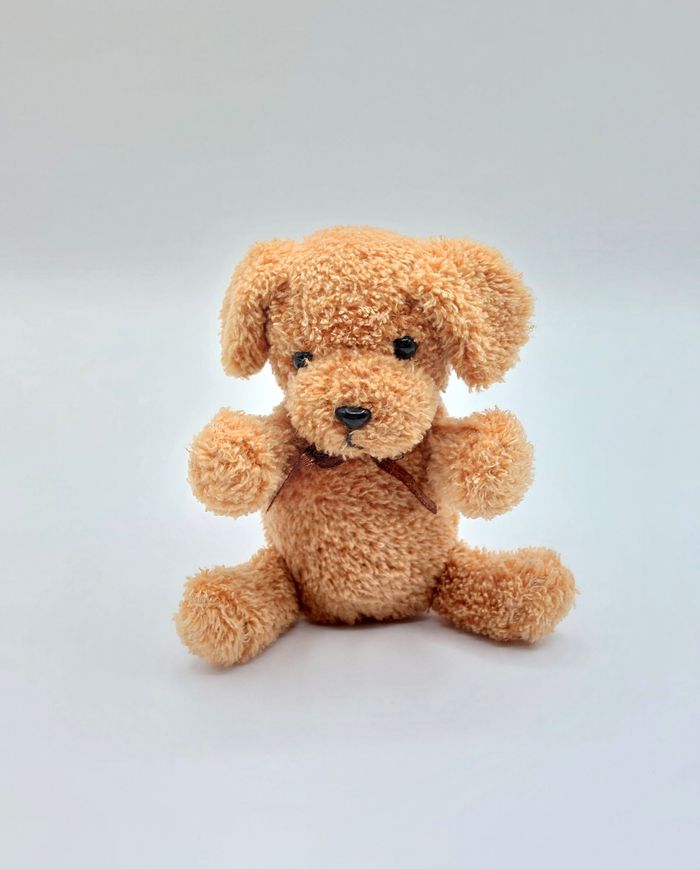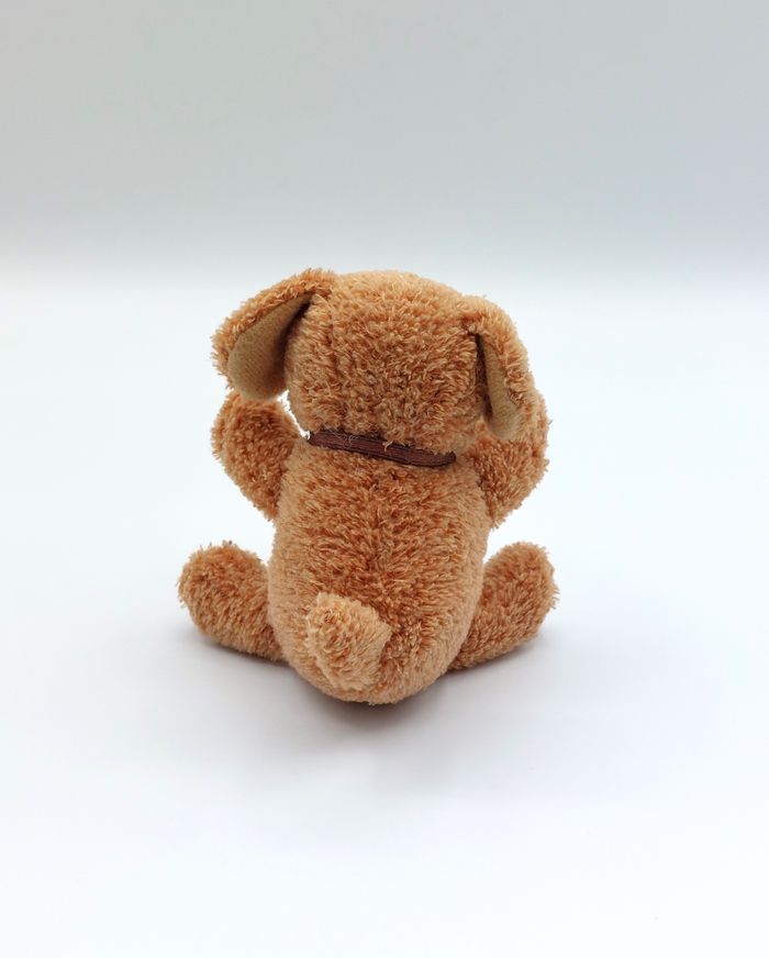 Mini peluche chien marron beige Yves Rocher nœud 11 cm doudou - photo numéro 1