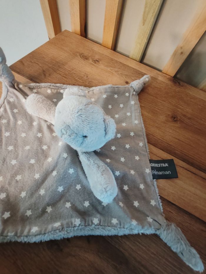 Doudou plat Ours gris marron étoiles luminescent ORCHESTRA premaman Tbe Étiquette marque présente 22 euros envoi en relais