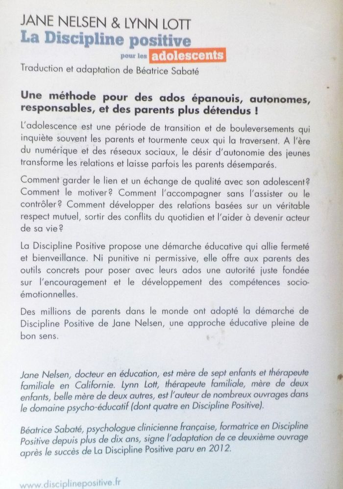 LA DISCIPLINE POSITIVE POUR LES ADOLESCENTS Comment accompagner nos ados, les encourager et les motiver, avec fermeté et bienveillance par Jane NELSEN & Lynn LOTT Ed. du Toucan Bon état Résumé en photo n°2