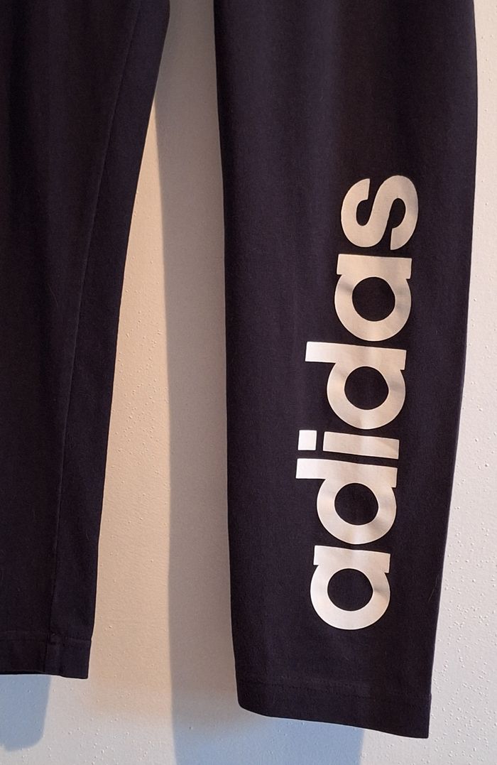 Legging de hauteur 80 cm à taille élastique bien élasthane. Noir imprimé Adidas en blanc sur la jambe gauche. Etiquette coupée car ça grattait mais c'est bien un Adidas.