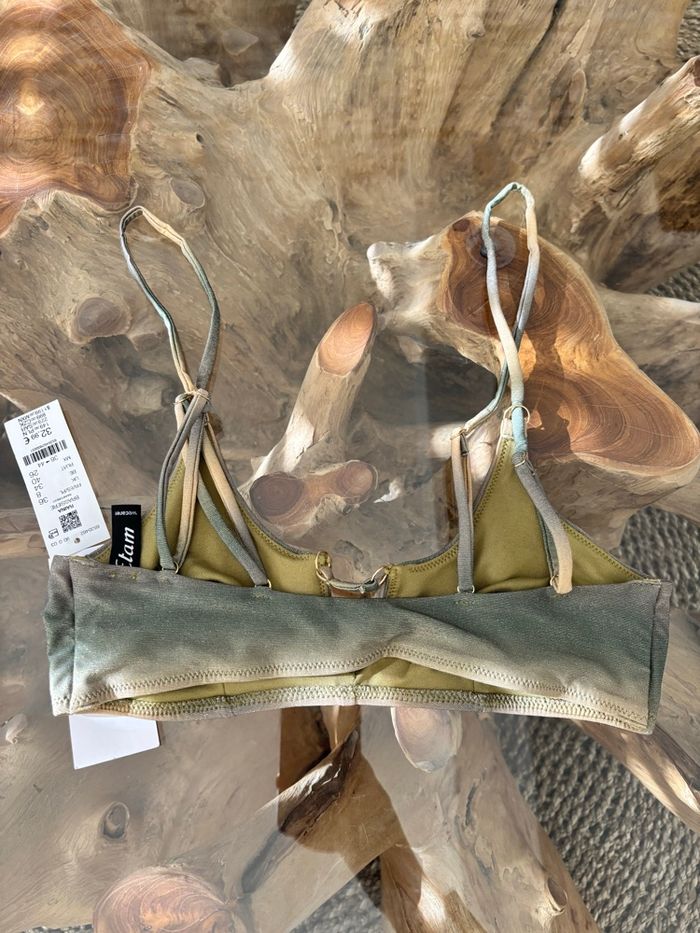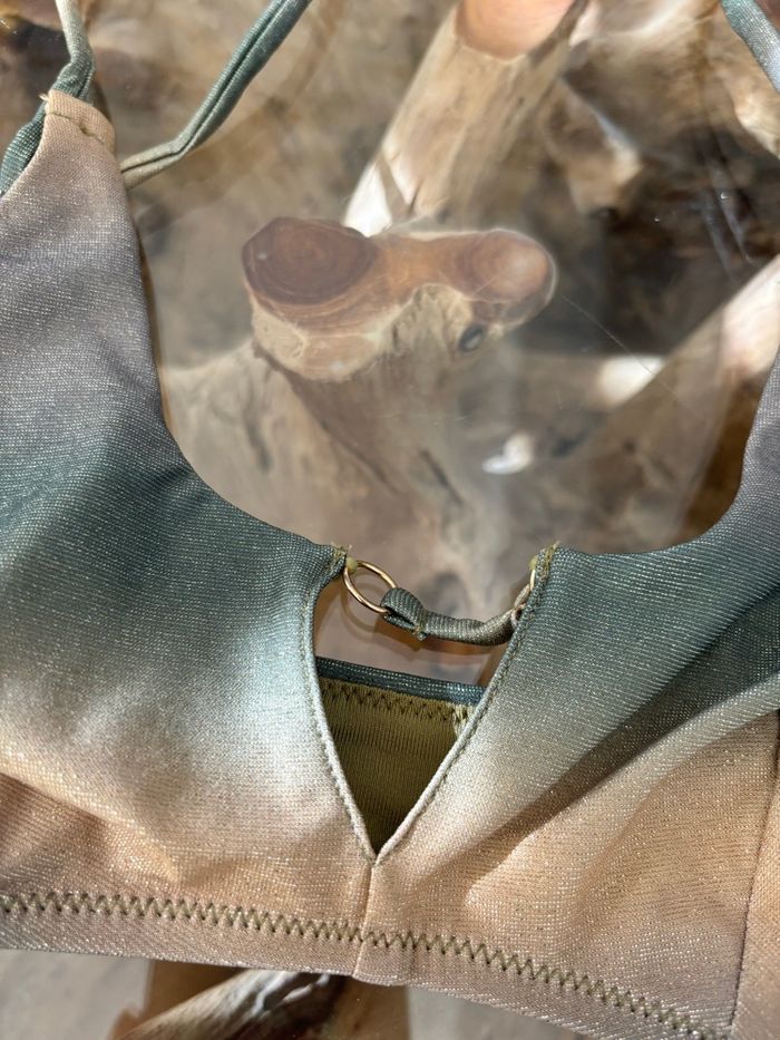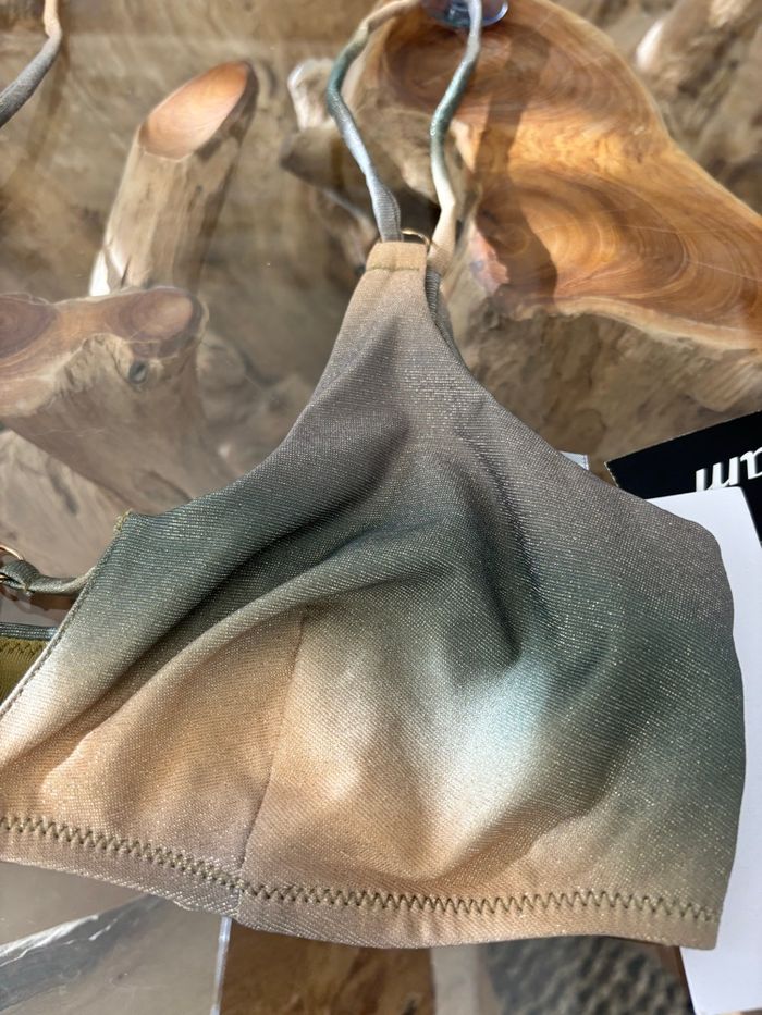 Haut de maillot de bain Etam Modèle Raina brassière rainforest Bretelles réglables Sans coussinets Vert doré irisé (brillant) Taille 36 Neuf avec étiquette N'hésitez pas à faire des lots ✨ réduction dès 2 articles (d'autres maillots de bain à vendre) Pour voir mes autres maillots de bain : #mdbludi2607 ✉️Pas de remise en main propre