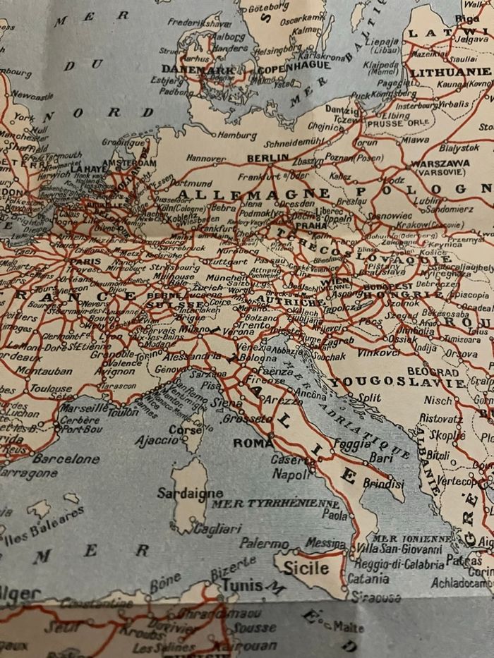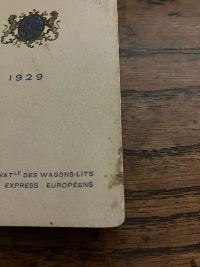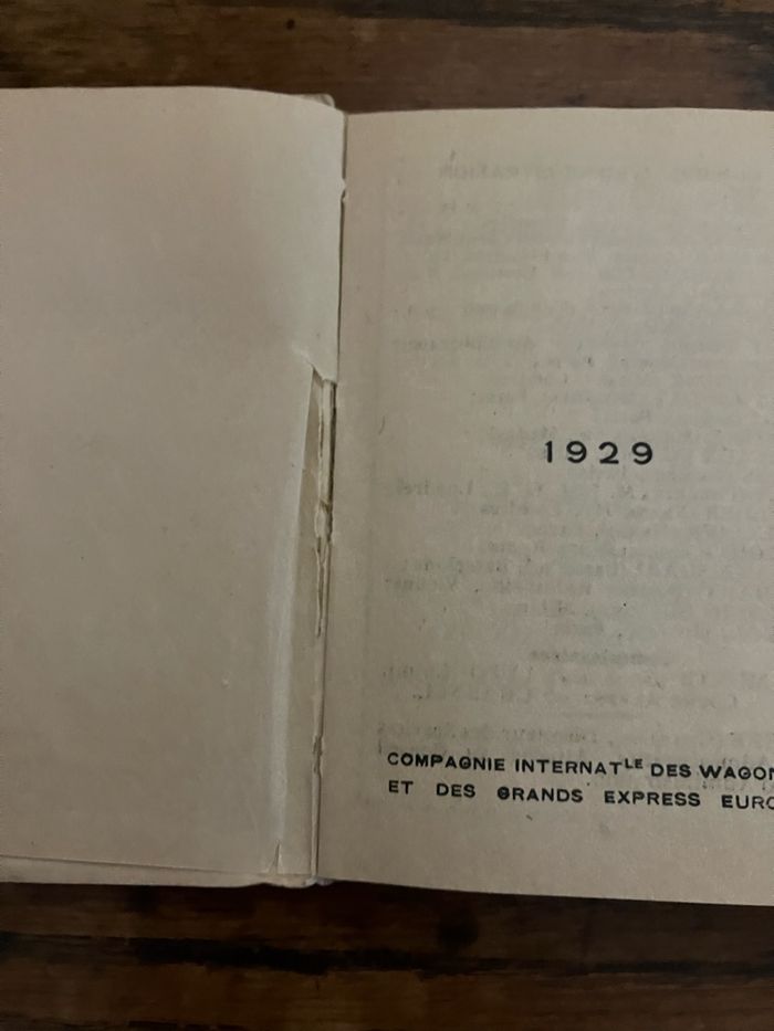 Ce mini livret est ancien et en bon état pour l’époque :pas de page manquante, pas d'écriture. À noter toutefois, un début de déchirure de la partie supérieure de la tranche et couverture légèrement tachée. (Voir photos) Il récapitule pour l'année 1929 des informations administratives sur l'administration de la compagnie des wagons lits et des grands express européens: pays, personnes... et comporte un calendrier de l'année ainsi qu’une carte en couleur du réseau, intégrée au livret, dépliante. Dimensions de la carte : environ 22cm x 22 cm 67 pages Dimensions du livret - largeur : 9,5 cm - hauteur : 6,5 cm - épaisseur : 5 mm