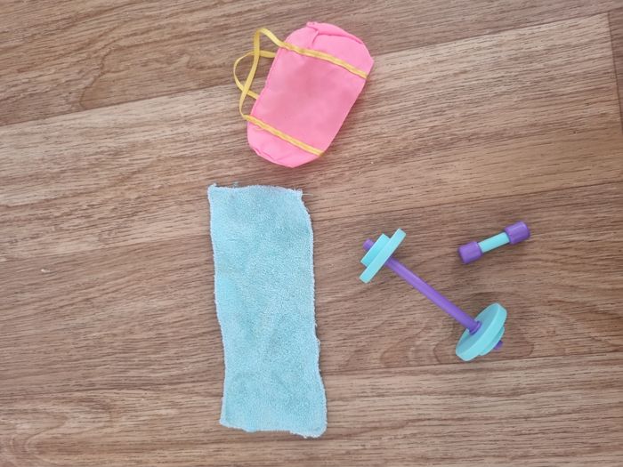 Lot sport vintage (sac, serviette et haltères) Barbie