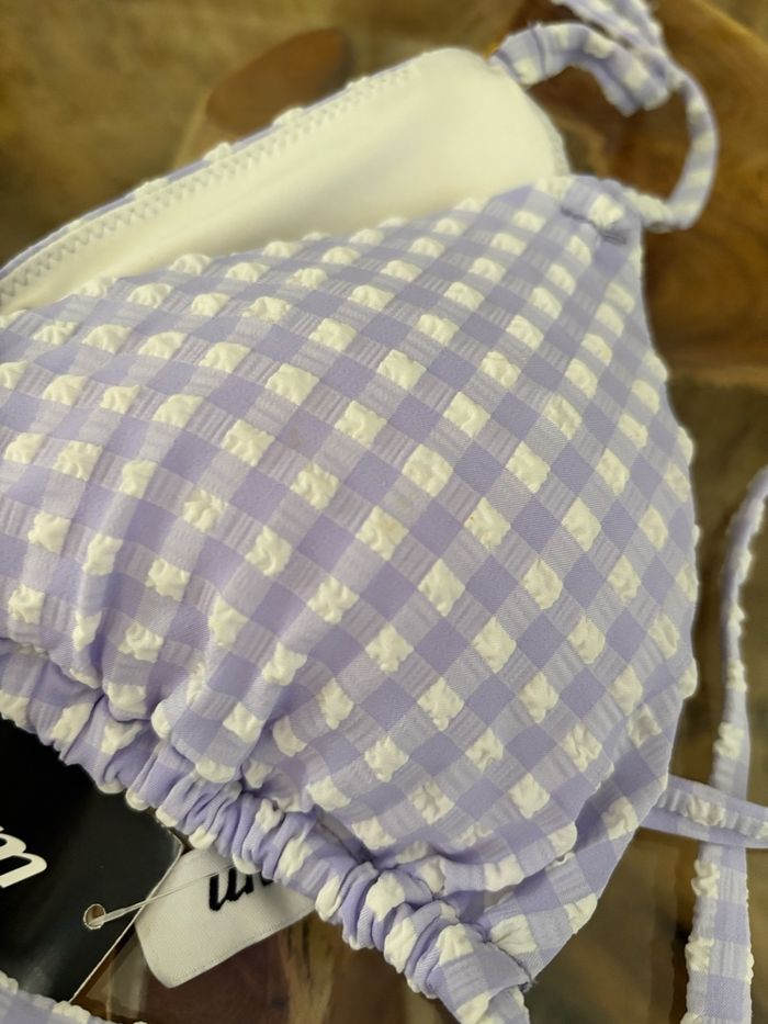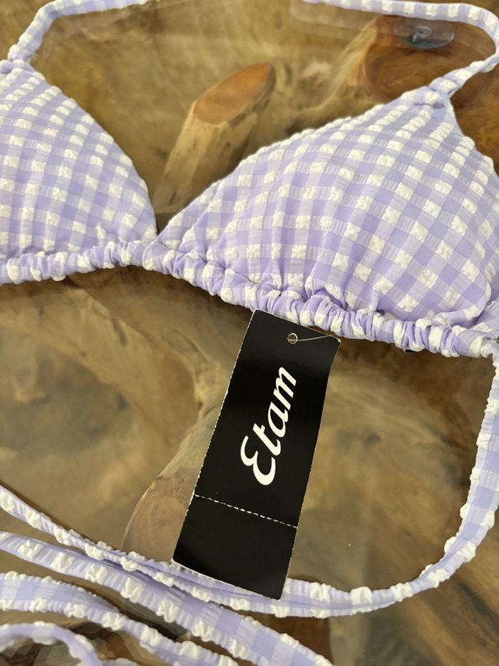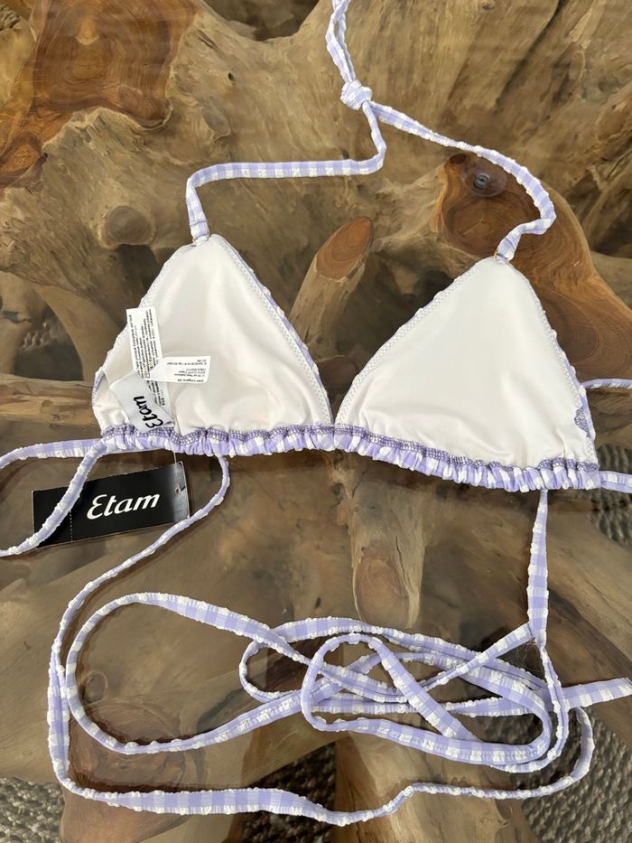 Haut de maillot de bain Etam Modèle Elya spe triangle SA 2 Rainbow Coussinets amovibles Imprimé carreaux blancs et lilas Longue ficelle qui permet de faire le tour du ventre Taille 38 Neuf avec étiquette N'hésitez pas à faire des lots ✨ réduction dès 2 articles (d'autres maillots de bain à vendre) Pour voir mes autres maillots de bain : #mdbludi2607 ✉️Pas de remise en main propre