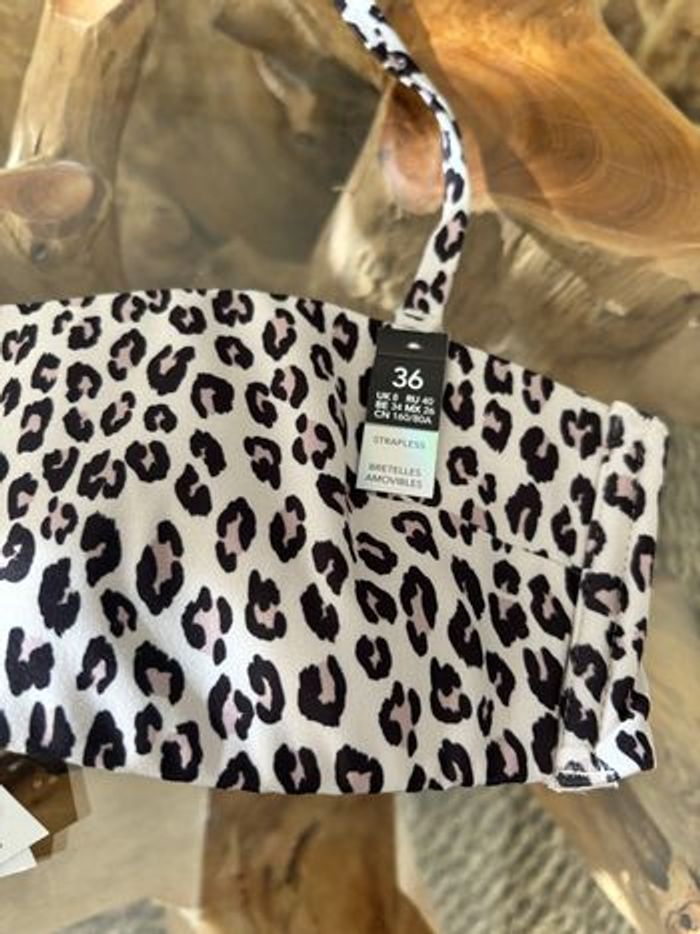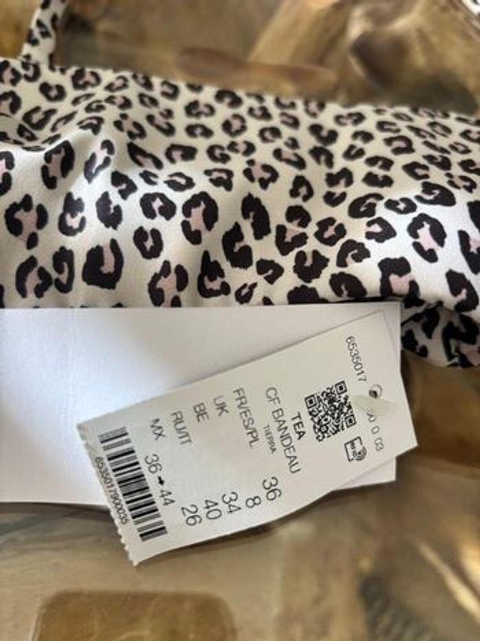 Haut de maillot de bain Etam Modèle Tea cf bandeau tierra Pas de coussinets Imprimé léopard Possibilité de retirer les bretelles pour le porter en bandeau Taille 36 Neuf avec étiquette N'hésitez pas à faire des lots ✨ réduction dès 2 articles (d'autres maillots de bain à vendre) Pour voir mes autres maillots de bain : #mdbludi2607 ✉️Pas de remise en main propre