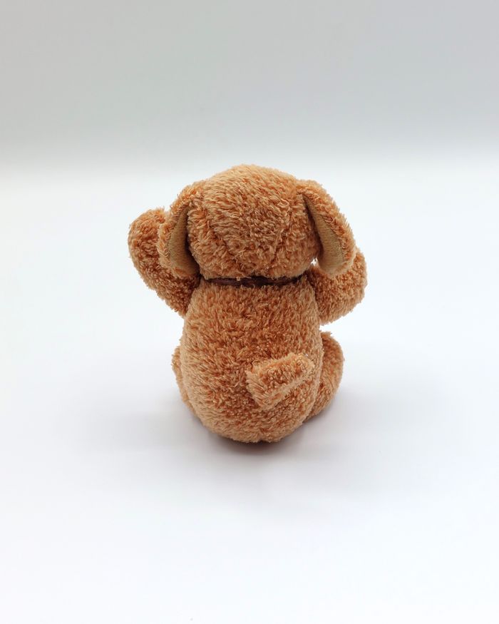 Mini peluche chien marron beige Yves Rocher nœud 10 cm doudou - photo numéro 3