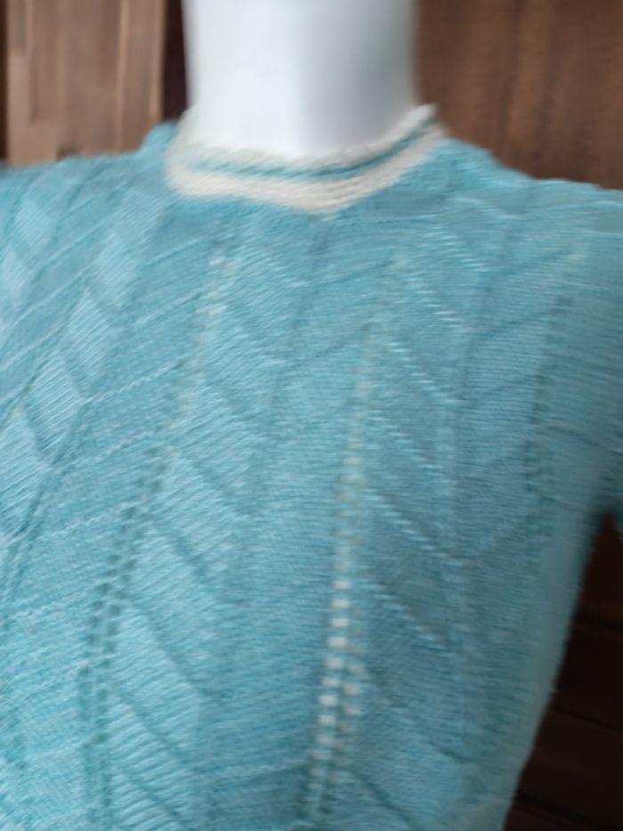 T-shirt bleu turquoise en tricot manches courtes fille 14/16 ans, la taille n'est pas indiquée ni la marque ni la compostion, car il n'y a aucune étiquette, c'est d trcot, mais je pense industriel. Petit haut en très bon état, fil synthétique, peut-être de l'acrylique mélangé à une autre fibre. Merci de consulter les mesures avant tout achat. *Mannequin fait la taille 36. Mesures : Longueur : 56 cm Longueur manche depuis aisselle : 10 cm Longueur manche depuis l'épaule : 20 cm Largeur dos entre les aisselles : 42 cm Largeur dos entre les épaules : 36 cm Poids : 175g