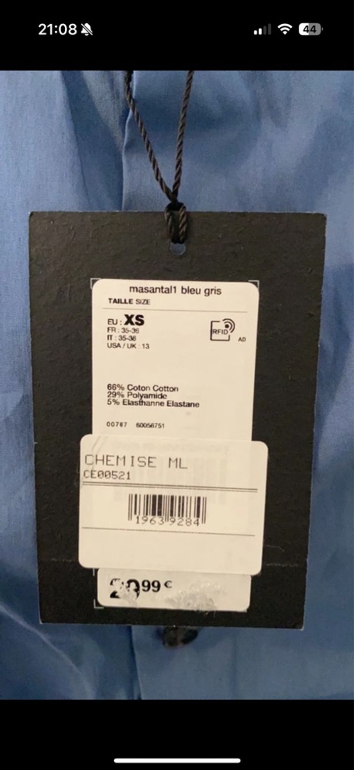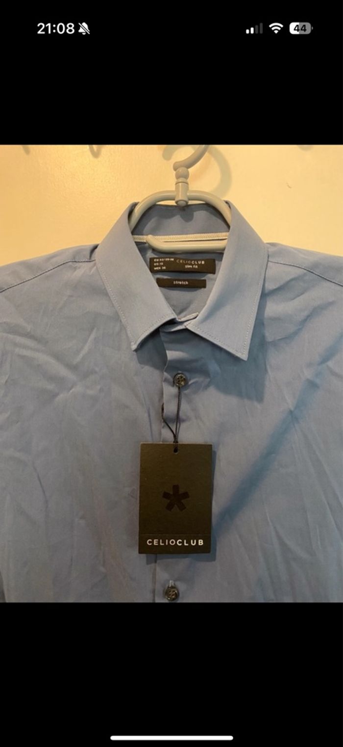 🌼 Idéale pour un style chic, parfaite aussi bien au bureau qu’en sortie. 📌 Marque : Celio 📏 Taille : XS 👔 coupe slim fit 🧵Matière : 66% coton 🎨 Couleur : Bleu 🏷️ Neuf avec étiquette , prix boutique 30€
