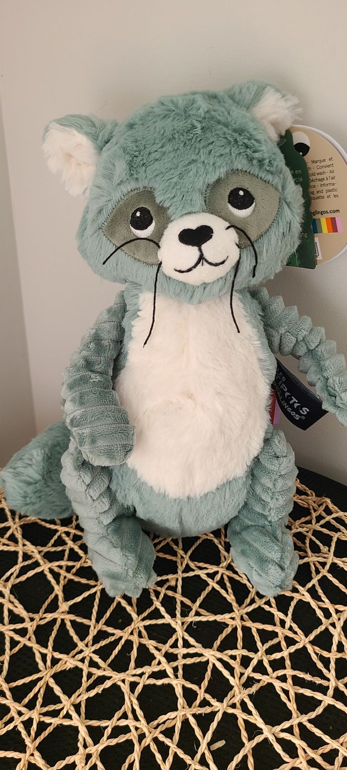 Peluche raton laveur Netoitou vert - Les Ptipotos les déglingos