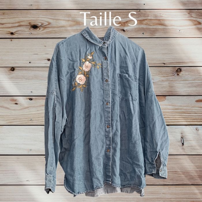 💎🌿 Chemise effet denim brodée – ZARA 🌿💎 - photo numéro 1