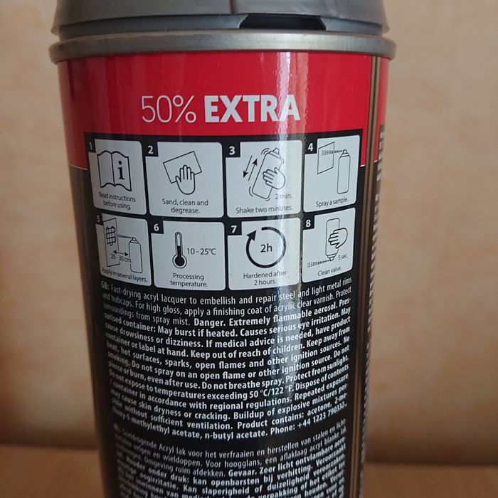 Vernis acrylique à séchage rapide pour jantes et enjoliveurs en acier et métal léger. Flacon neuf 600ml Si vous avez des questions, n'hésitez pas 😉