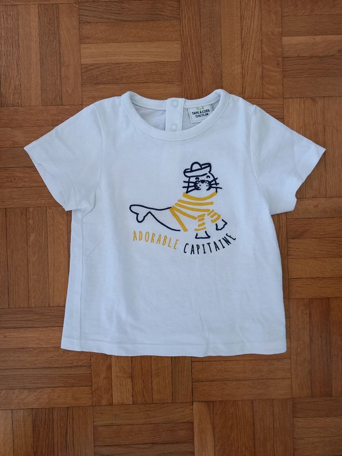 En très bon état ! 1 pantalon 12 mois Gémo 1 t-shirt 12 mois Tape à l'œil Tenue légère pour les beaux jours !