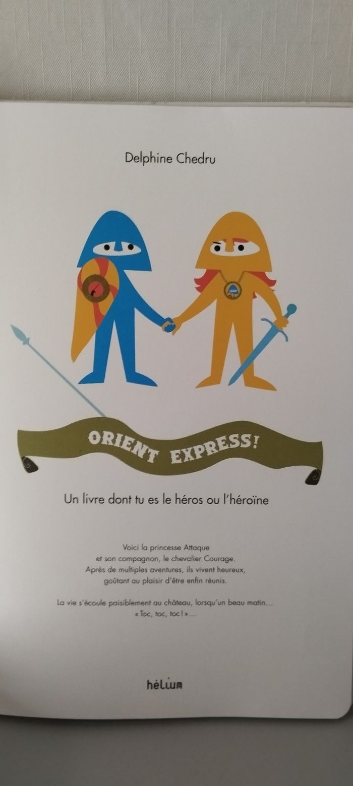 Un livre jeu dont tu es le héros ou l'héroïne. Orient Express ! Une aventure du chevalier Courage et de la princesse Attaque. À partir de 4 ans. Édition hélium 2014 Très bon état .